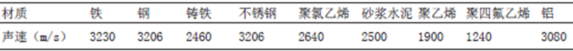 管道材質(zhì)及內(nèi)襯對(duì)測(cè)量的影響在于聲波在不同媒介中傳播速度的差異。如果材質(zhì)傳播聲波的速度大于設(shè)定聲速,則測(cè)量結(jié)果偏小,反之偏大。各種管道材質(zhì)的聲速見表4。